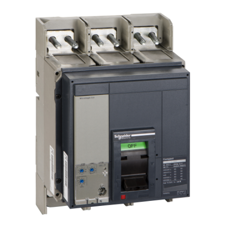 This Compact NS1250N is a complete 3 poles fixed circuit breaker designed to optimize space and breaking capacity. It is an optimal choice for all standard and specific applications. The breaking capacity (Icu) is 50kA rms at 415VAC 50/60Hz. The operational voltage is 690VAC 50/60Hz. The circuit breaker can be manually operated with ON, OFF or "push to trip" buttons. This product embeds an electronic Micrologic 2.0 trip unit, with 1250A rating. Micrologic 2.0 trip unit provides adjustable long time and instantaneous protections. This 3 poles version (327mm x 210mm x 147mm) comes with a variety of optional functions and accessories. It is compliant with IEC 69947-1 and IEC60947-2 international standards and marine specifications. Compact NS1250N is part of Schneider Electric EcoStruxure Power architecture.