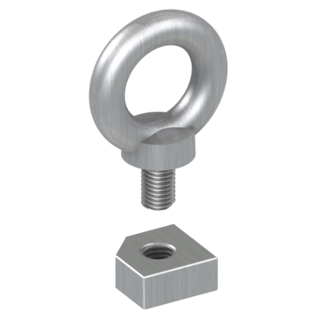 Set of M12 lifting eyebolt for Spacial SF/SFM. H is 61.5 x W is 54 x D is 26 mm. Mounting on enclosure top. Permanent permissible load 1360 kg slinging at 60°. Cast steel, galvanized surfacefinish. Set of 4 fixing nuts and 4 eyebolt.