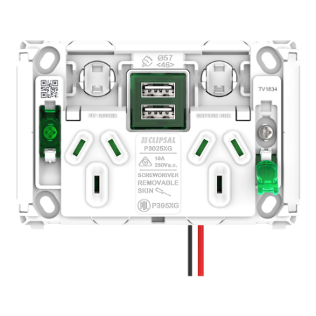 Clipsal Pro Series, Twin Power Point Grid, Horizontal Mount, 1Ex2USBCHRG, Type A+A, 10A, 250V