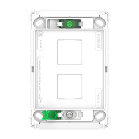 The Clipsal Pro Series 2 Gang Switch Grid has been designed with commercial buildings in mind. The grid features pre-mounted screws for a faster fit off, as well as screw covers to prevent access to the screws once they have been installed. The grid features panels where identification labels can be adhered to.