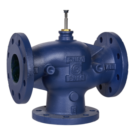 VG311F Globe Valve, 3-Way, DN80, Flanged, Kvs 100 m³/h, Cast Iron Body and Seat, Brass Plug.