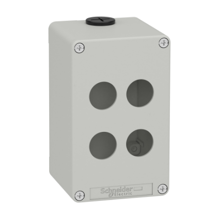 This product is part of XAP range, an offer of metal control stations for XB4 and XB5 series of Ø 22mm pushbuttons. XAPD2504 is an empty enclosure with grey color (RAL7035). This version with 4 holes allows combination of XB4/XB5 functions in a small volume. Its dimension leaves a comfortable space for wiring. It is possible to customize the XAP with the Harmony online product selector and configurator. This product has been standardized with metric thread to be used with ISO cable glands to be fully compliant with the IEC 62444. It comes with two M20 holes. The electric shock protection is at class I conforming to EN/IEC 61140 and the mechanical shock protection level is up to IK07 conforming to EN/IEC 62262. This is a zinc alloy offer and the dimensions are 80mm (width) x 130mm (height) x 77mm (depth) and it weighs 0.810kg. XAPD is designed for Original Equipment Manufacturers (OEMs) that meets heavy duty application requirements such as material handling, food & beverage, wind turbines, Mining, Minerals and Metals (MMM), vehicles, etc. This enclosure complies with EN/IEC 60529 and EN/IEC 60947-5-1 and comes with CE, UL, cULus and EAC certification. Fully customized legend panel are available to improve interface experience and enclosure's aesthetic. XAP is designed to be mounted in both vertical and horizontal position with 4 fixing holes. The form factor allows a combination between simplicity, customization flexibility and attractive design for machines It is eco-friendly and complies with directives such as RoHS, WEEE and REACh relating to environmental protection.