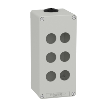 This product is part of XAP range, an offer of metal control stations for XB4 and XB5 series of Ø 22mm pushbuttons. XAPD3506 is an empty enclosure with grey color (RAL7035). This version with 6 holes allows combination of XB4/XB5 functions in a small volume. Its dimension leaves a comfortable space for the wiring. It is possible to customize the XAP with the Harmony online product selector and configurator. This product has been standardized with metric thread to be used with ISO cable glands to be fully compliant with the IEC 62444. It comes with two M25 holes. The electric shock protection is at class I conforming to EN/IEC 61140 and the mechanical shock protection level is up to IK07 conforming to EN/IEC 62262. This is a zinc alloy offer and the dimensions are 80mm (width) x 175mm (height) x 77mm (depth) and it weighs 1.130kg. XAPD is designed for Original Equipment Manufacturers (OEMs) that meets heavy duty application requirements such as material handling, food & beverage, wind turbines, Mining, Minerals and Metals (MMM), vehicles, etc. This enclosure complies with EN/IEC 60529 and EN/IEC 60947-5-1 and comes with CE and EAC certification. Fully customized legend panel are available to improve interface experience and enclosure's aesthetic. XAP is designed to be mounted in both vertical and horizontal position with 4 fixing holes. The form factor allows a combination between simplicity, customization flexibility and attractive design for machines It is eco-friendly and complies with directives such as RoHS, WEEE and REACh relating to environmental protection.